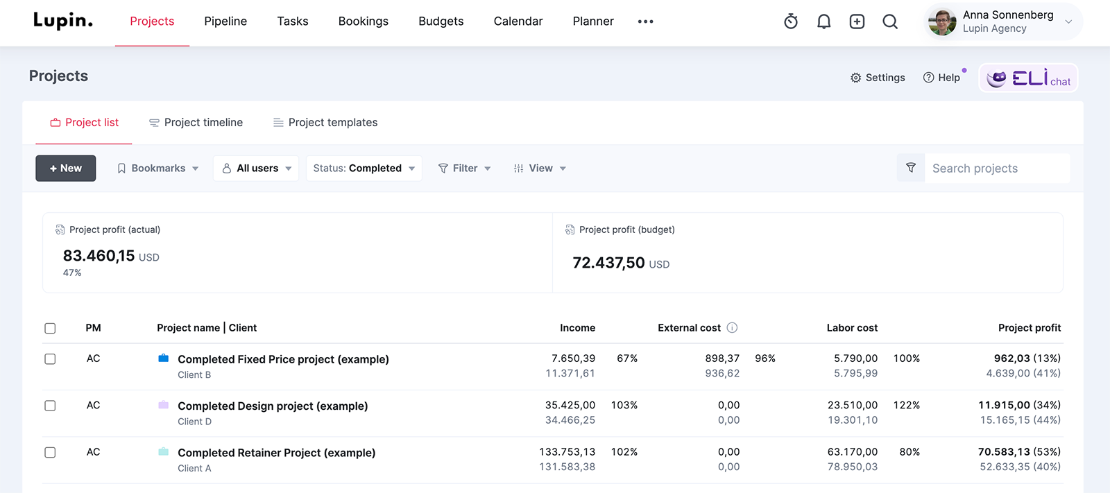 Scoro’s “Profitability by projects” report helps you see which types of projects consistently drive margins. And which ones drag profitability down. Use this to validate where your team should focus.