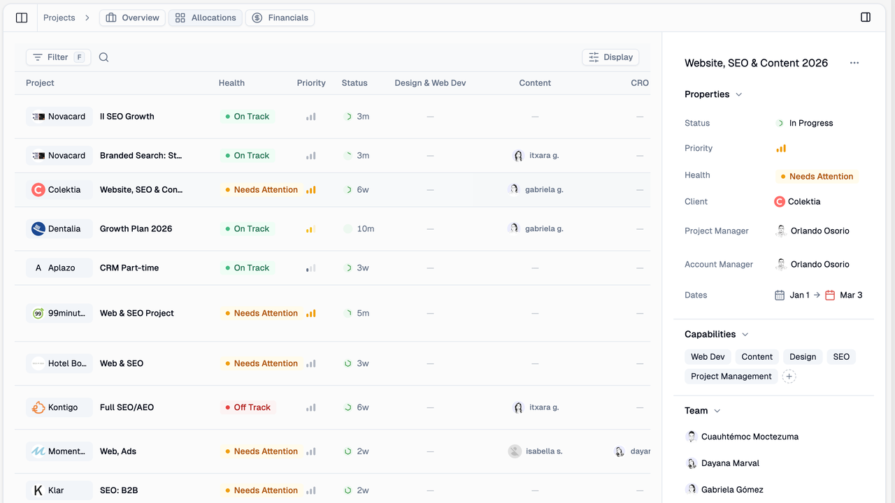 Best for: Professional service businesses that want to manage team capacity, projects, and finances in one integrated platform