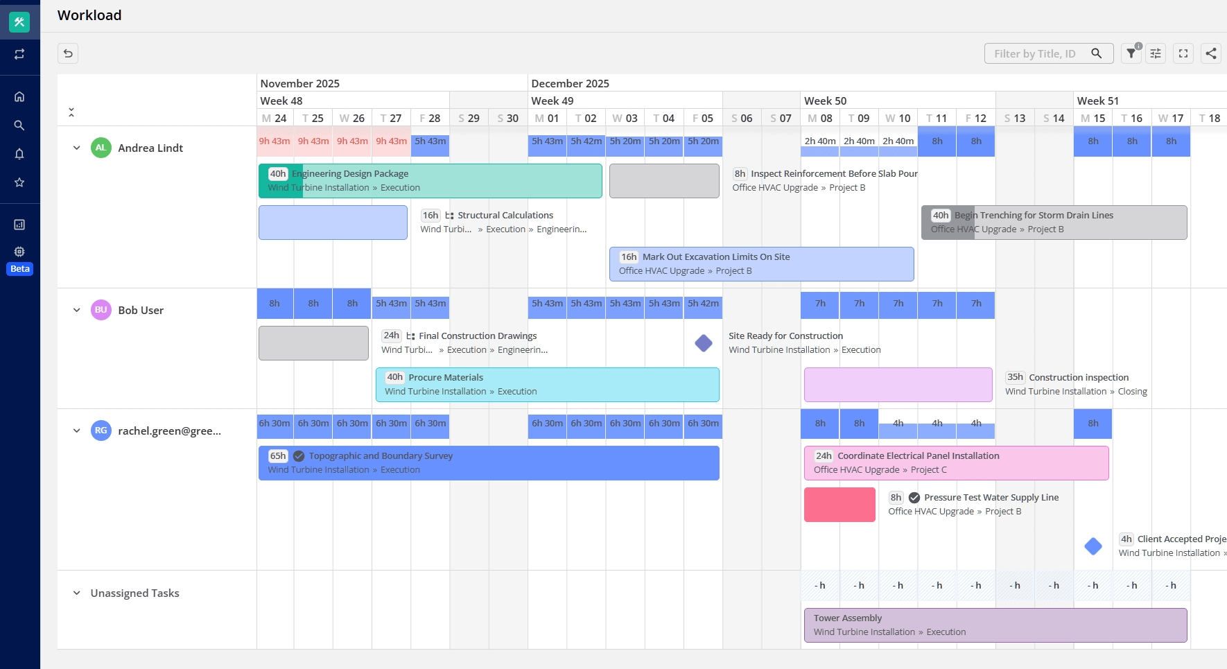 - Visual Utilization Tracking: Evaluate capacity levels in real-time with simple, color-coded availability bars.
