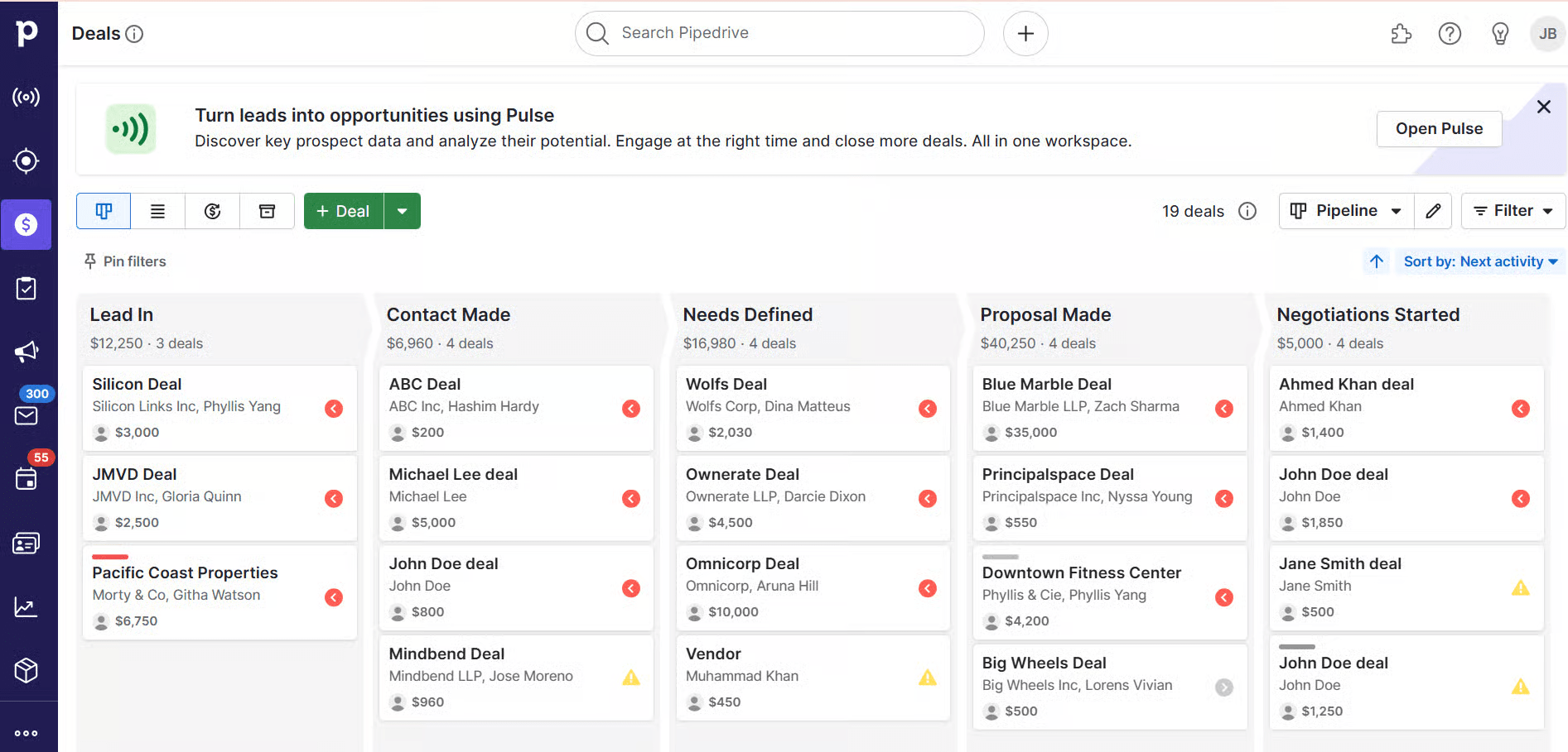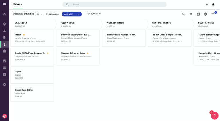 Instead of having to dig through your sales pipeline, everything is organized for you. For example, you can clearly see: