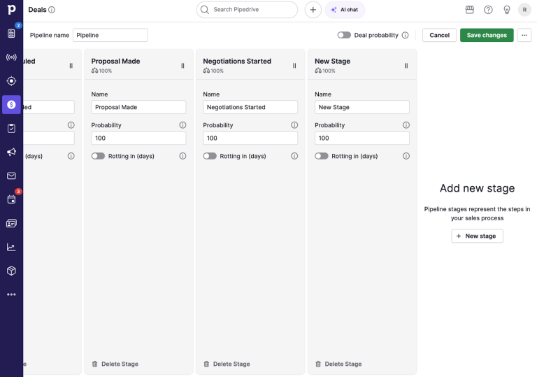 In its demo, we found that you can quickly edit pipeline stages and closing probabilities. This way, you can keep your pipeline and forecasting as accurate as possible.