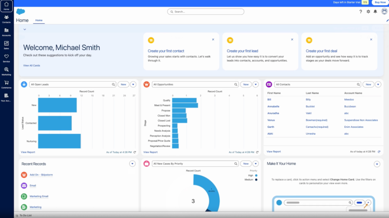 Founded in 1999, Salesforce was one of the early leaders in enterprise CRM platforms. Today, it’s expanded to an all-in-one business management tool for marketing, sales, customer service, and more.