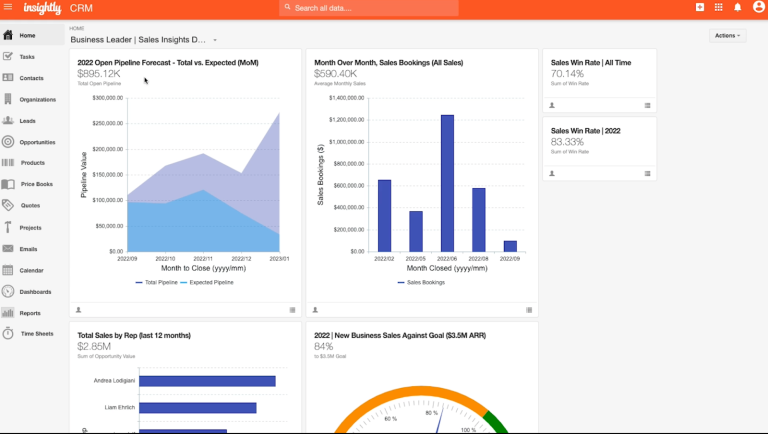 Insightly is designed for small businesses that want to focus on doing the basics well. If you’re looking for a platform that isn’t too complicated, yet helps you manage and organize contacts and opportunities across multiple teams, it’s a good option.