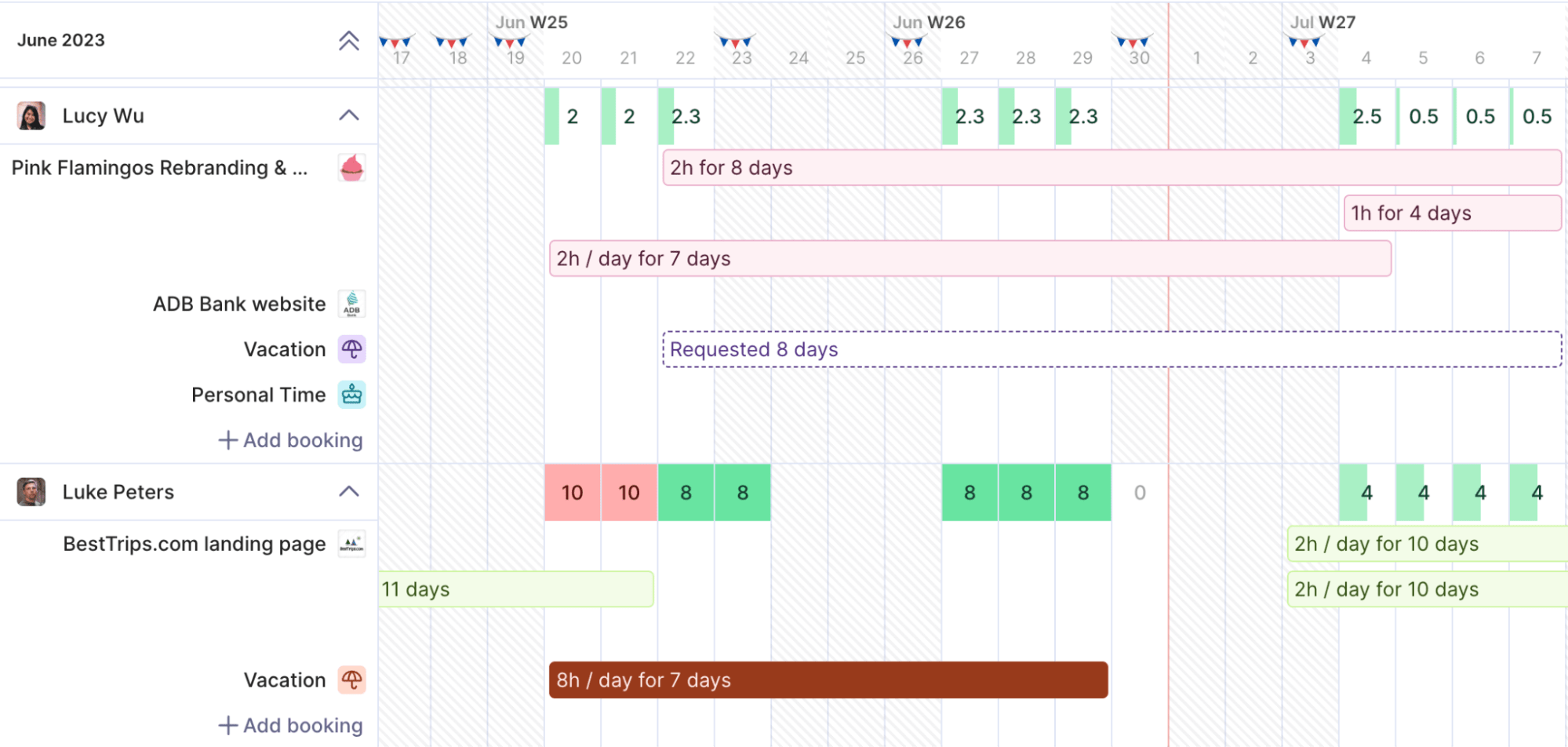 And their resource management feature is great for monitoring your team’s availability and productivity.