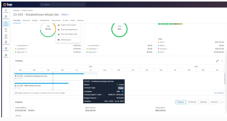 - Business intelligence and profitability tracking at the project level, helping you identify which clients and work types generate the best margins