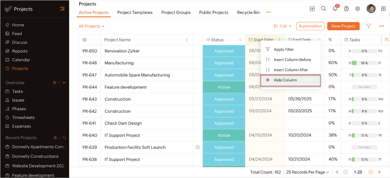 Best for: Businesses already using Zoho tools or ones that want affordable, integrated project management and CRM tools