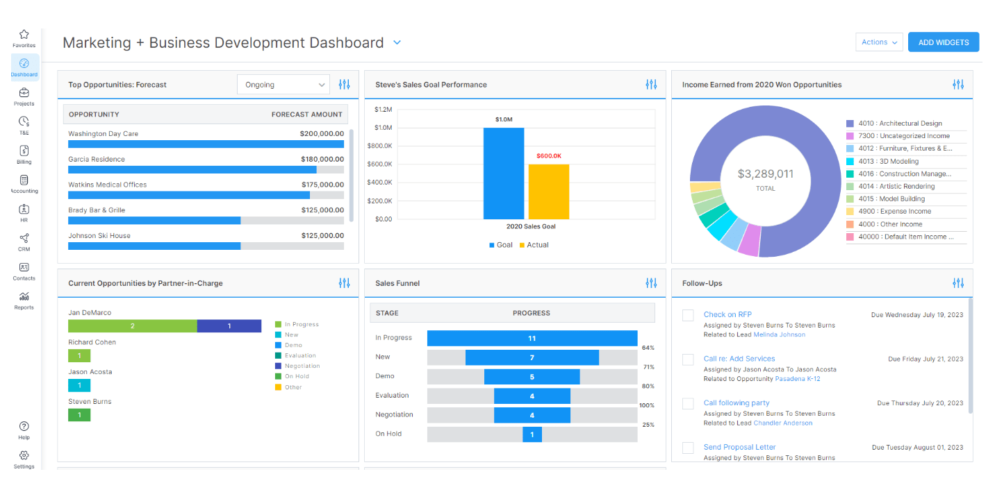 Best for: Architecture and engineering firms that need specialized project management with accounting and HR features