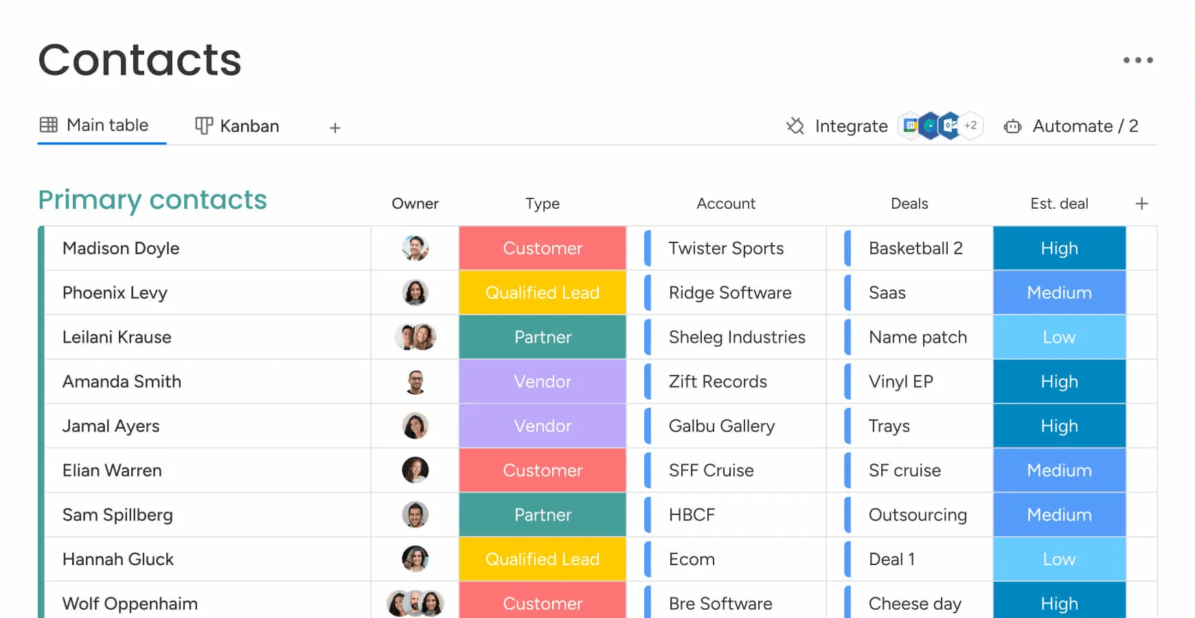 And the drag-and-drop CRM makes it easy to track and manage leads, deals, and pipeline stages in Monday’s well-known colorful style.