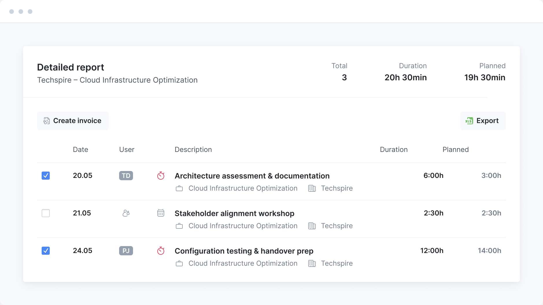 Manage time-based, milestone, or retainer billing in one place. Scoro links approved time, deliverables, and budgets directly to invoicing—so every bill reflects the real work done.