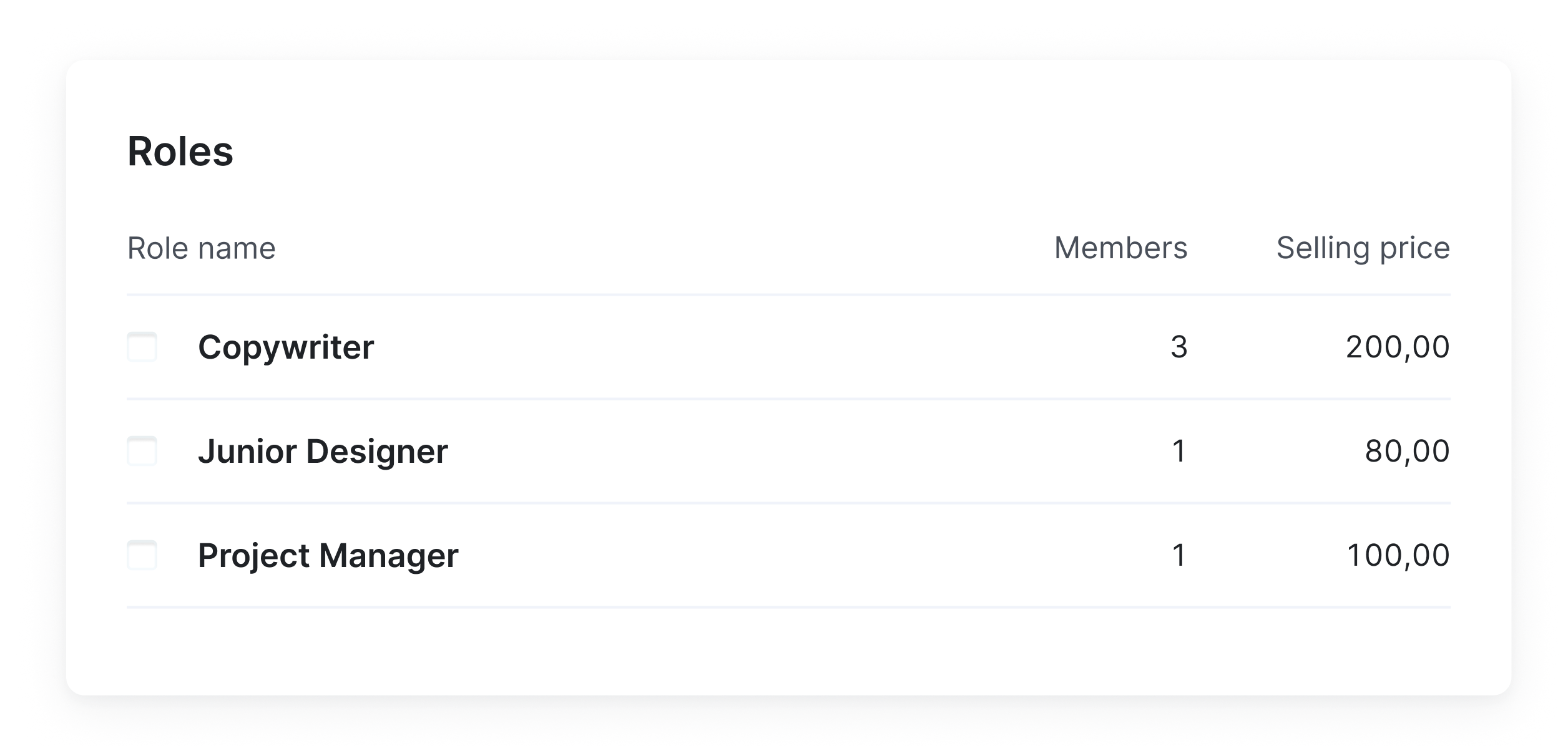 Service- and role-based pricing